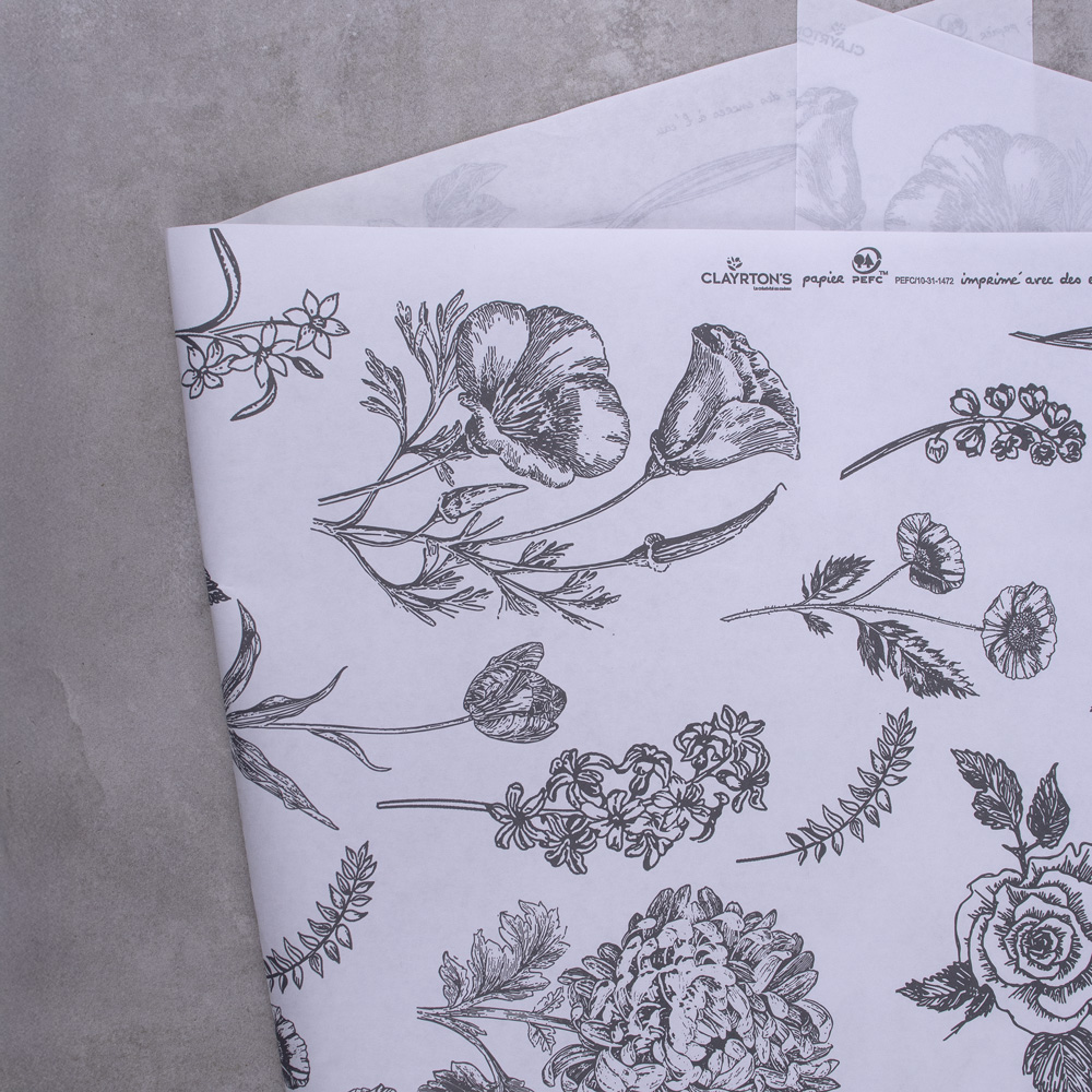 605-124 KRAFT SLEEVE 6 ROSES "BOTANICAL", WHITE/BLACK, 5"X14"X30", PK(10)