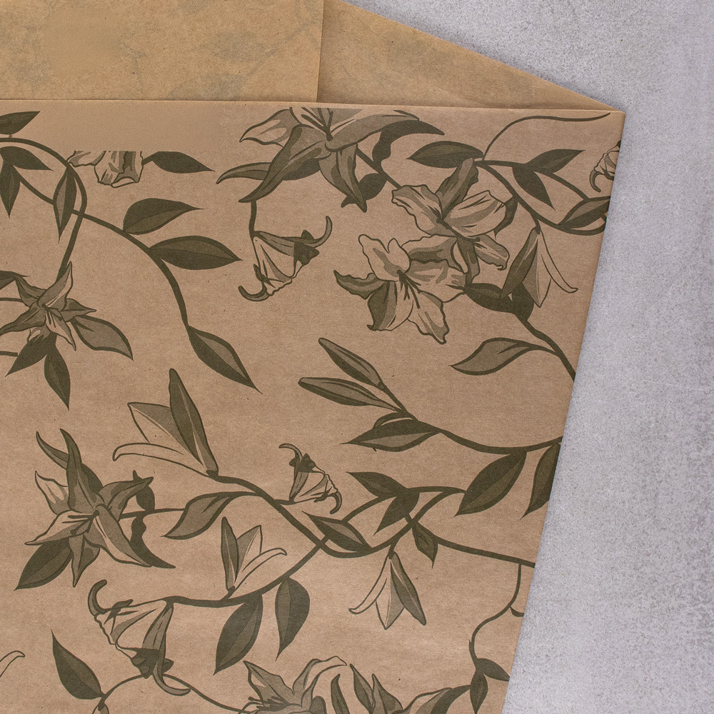 605-212 KRAFT SLEEVE 12 ROSES "ISAURE", NATURAL/GREEN, 4½"x19"x30", PK(10)