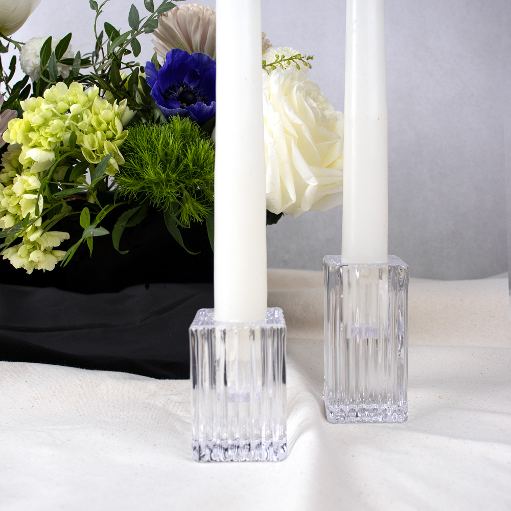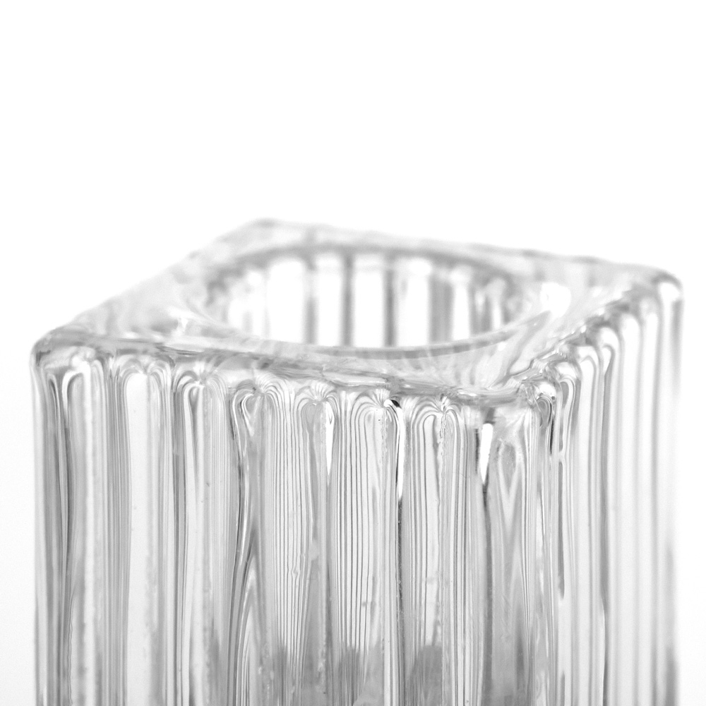 752-005 SQUARE FLUTED GLASS CANDLE HOLDER, CLEAR, 1½“ x 3”, BOX(12)