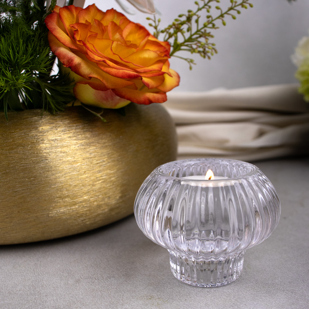 752-011 2-IN-1 GLASS CANDLE HOLDER, CLEAR, 3“ x 2½”, BOX(12)
