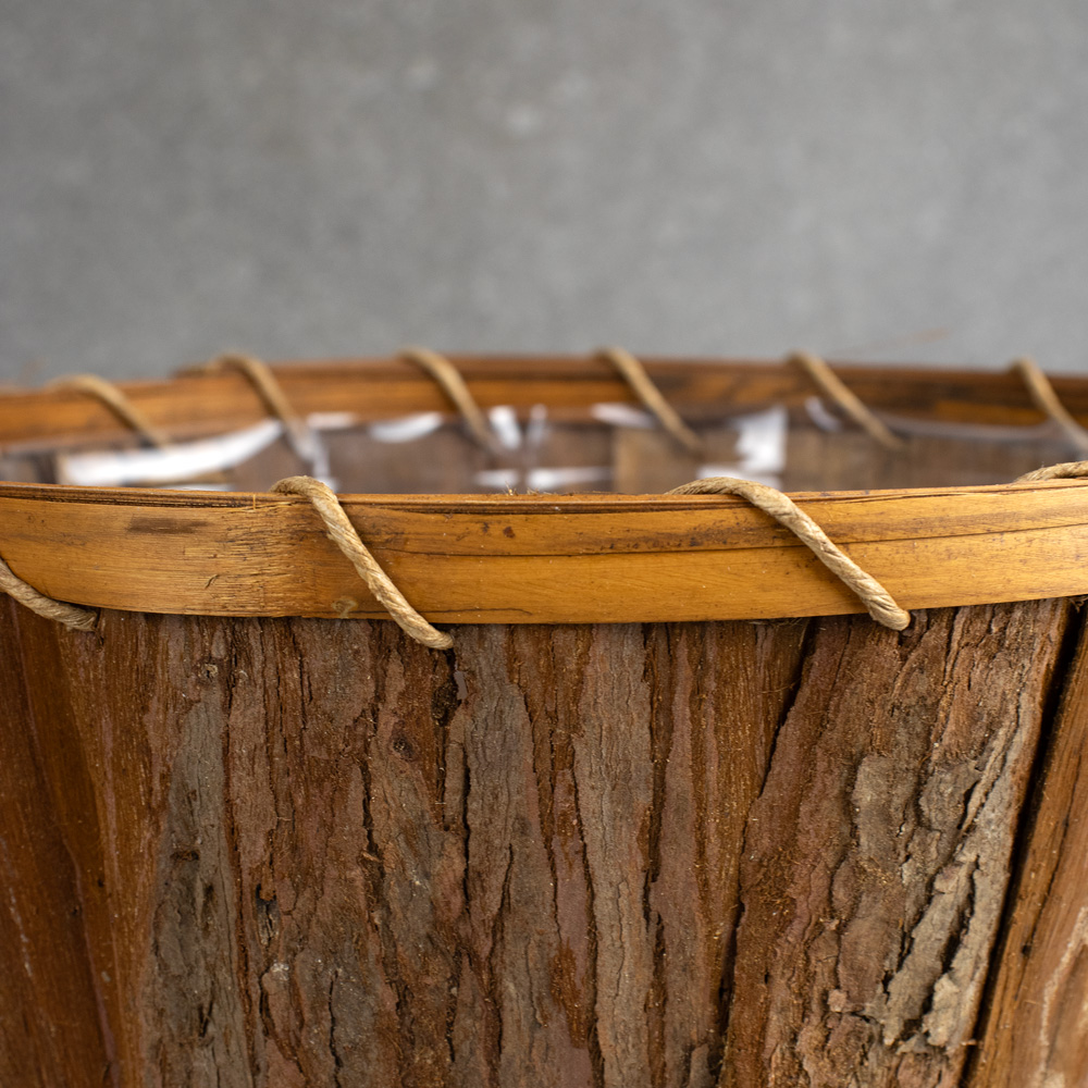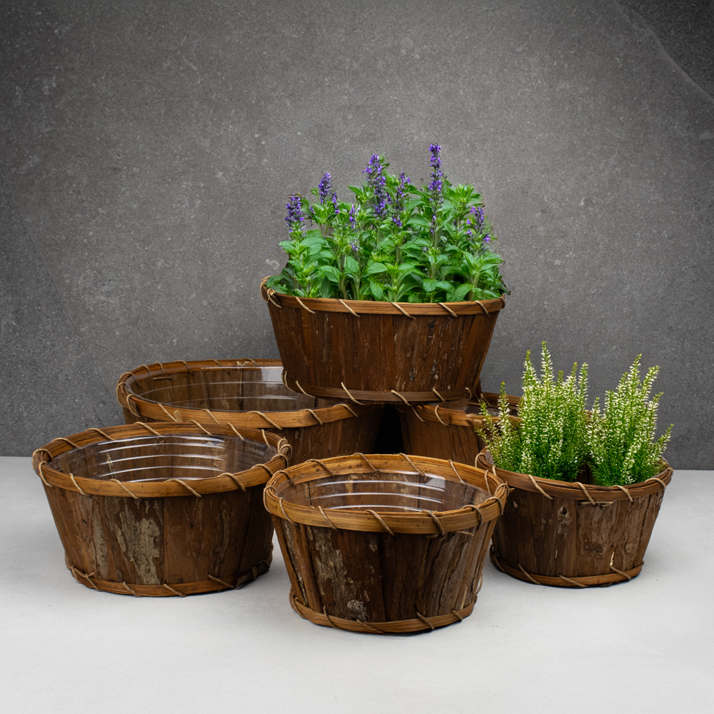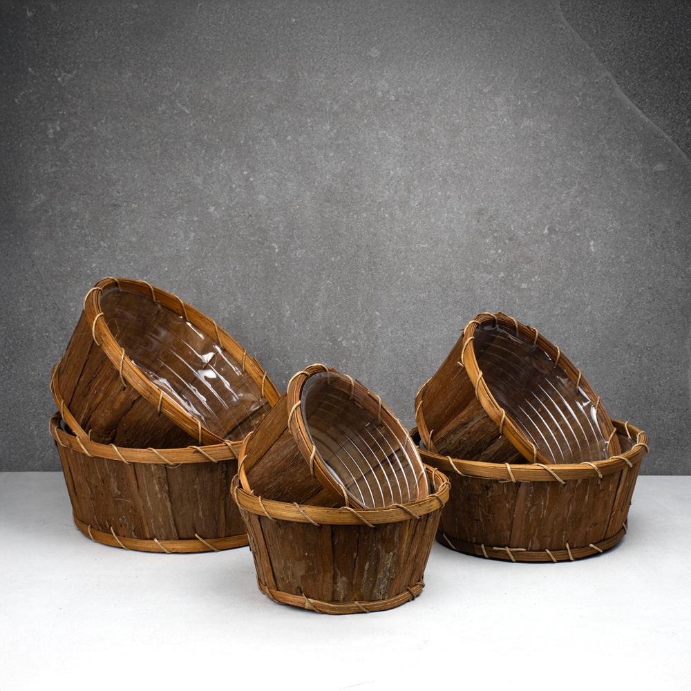 803-569 WOOD CHIPS ROUND BOWL BASKET SET W/LINER, BROWN, 7"-12", SET(6)