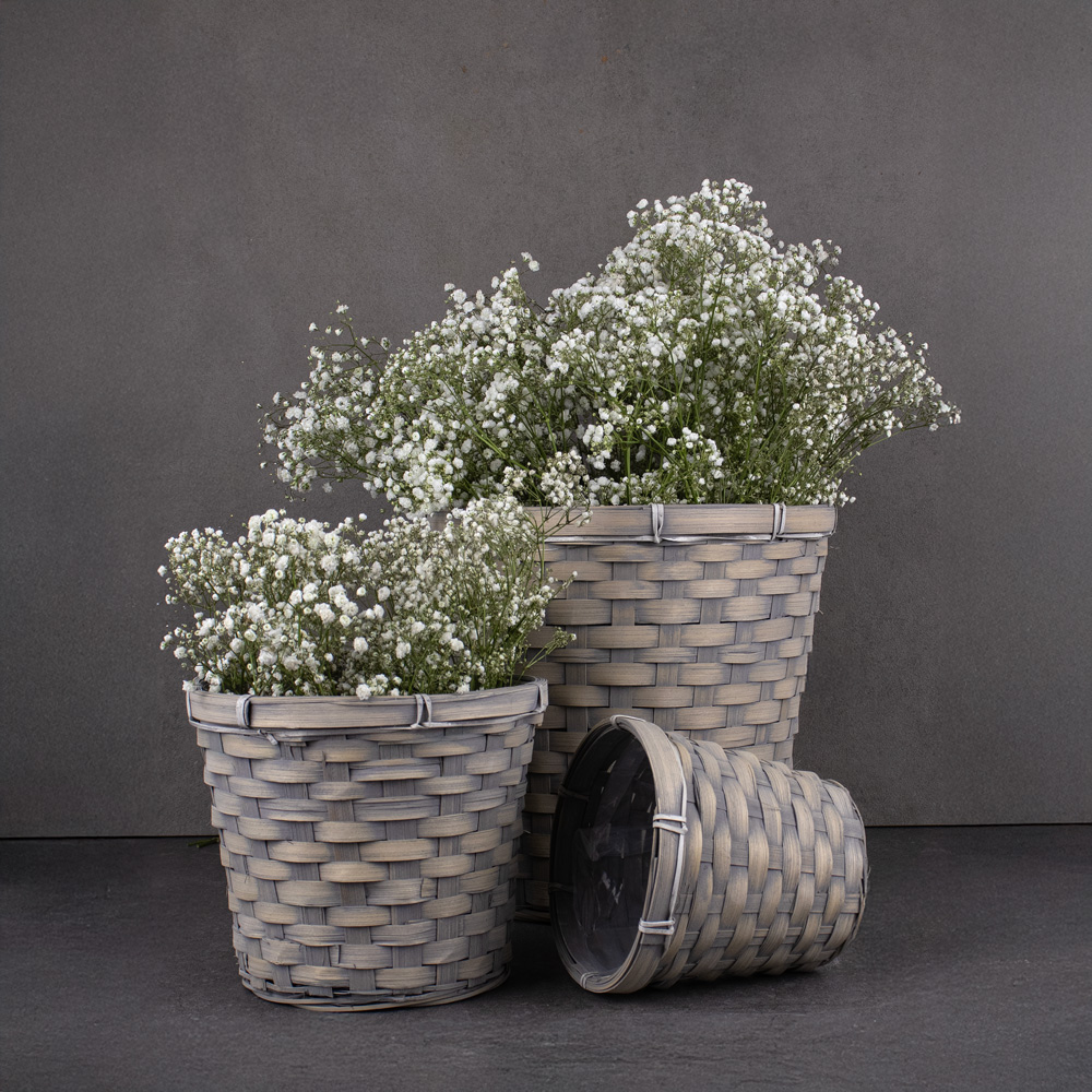803-592 4"(10CM)GREY WASHED ROUND POT COVER BASKET WITH LINER