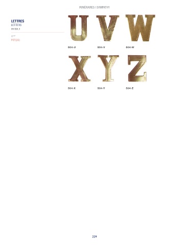 FUNÉRAIRES | SYMPATHY LETTRES LETTERS OR/GOLD 1/2 1 ” PQT(25) 504-U 504-V 504-W 504-X 504-Y 504-Z 229