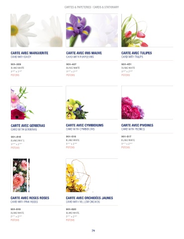 CARTE AVEC GERBERAS CARTE AVEC CYMBIDIUMS CARTE AVEC PIVOINES