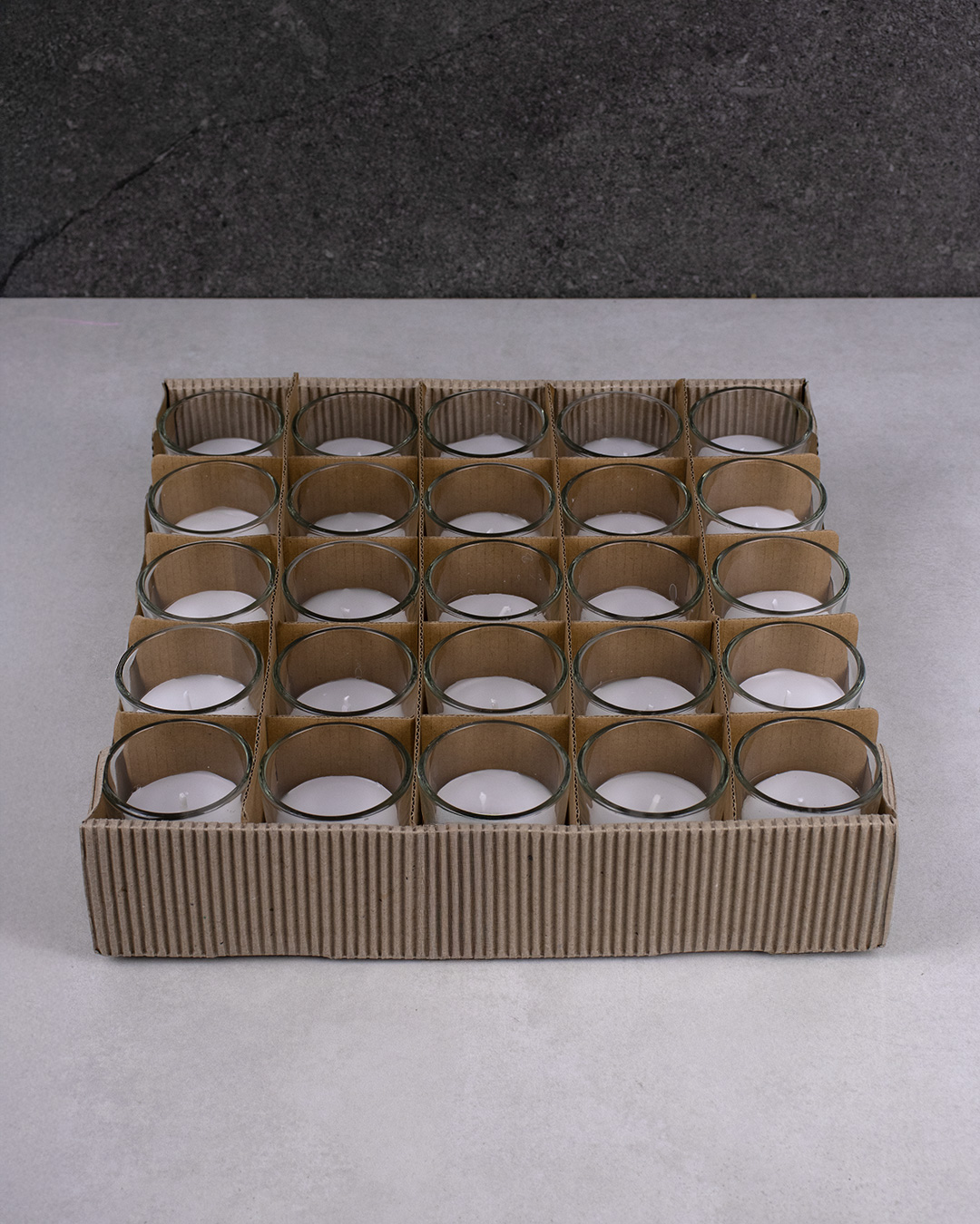 553-178 LAMPION VOTIVE A/VASE ROND 10 HEURES, BLANC, Ø2", TRAY(25)