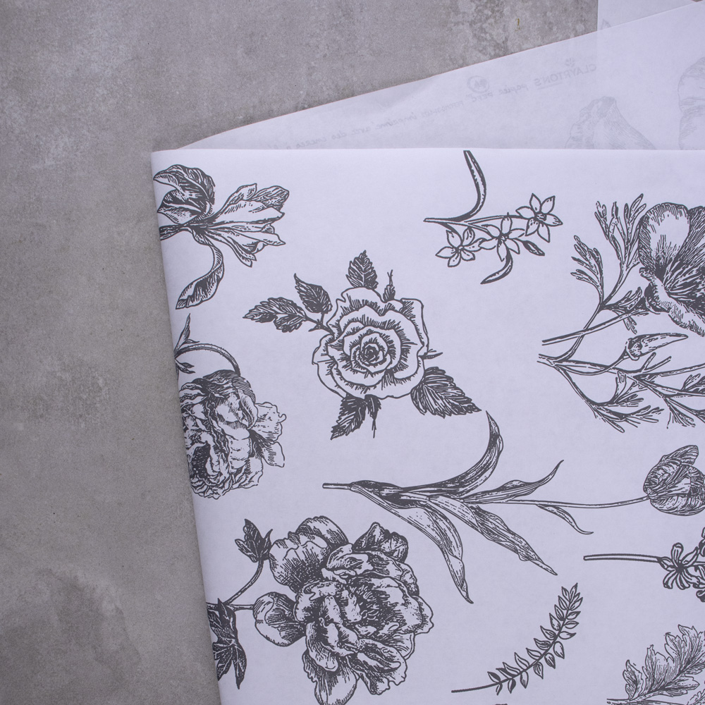 605-114 MANCHON KRAFT 12 ROSES "BOTANIQUE", NOIR/BLANC, 4½"x19"x30", PQT(10)
