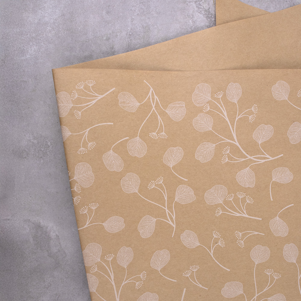 605-120 MANCHON KRAFT 6 ROSES A/EUCALYPTUS, NATUREL/BLANC, 5"X14"X30", PQT(10)