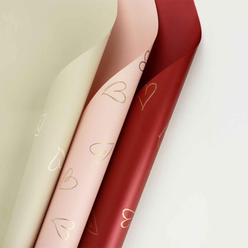 609-030 FEUILLE D'EMBALLAGE AVEC COEURS, ROSE, 23"X23", PQT(20)