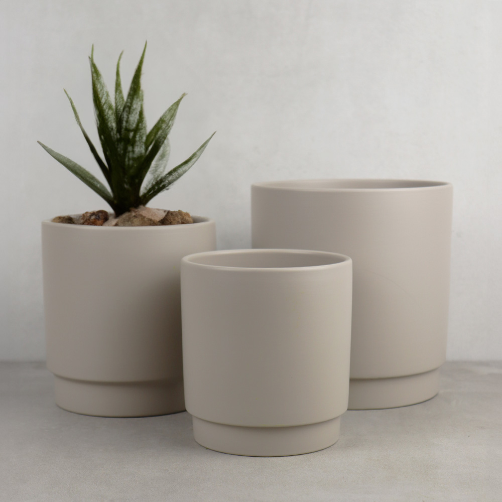 756-413 CACHE POT TERRACOTTA, GRIS MAT, Ø5½" x 6", BTE(6)