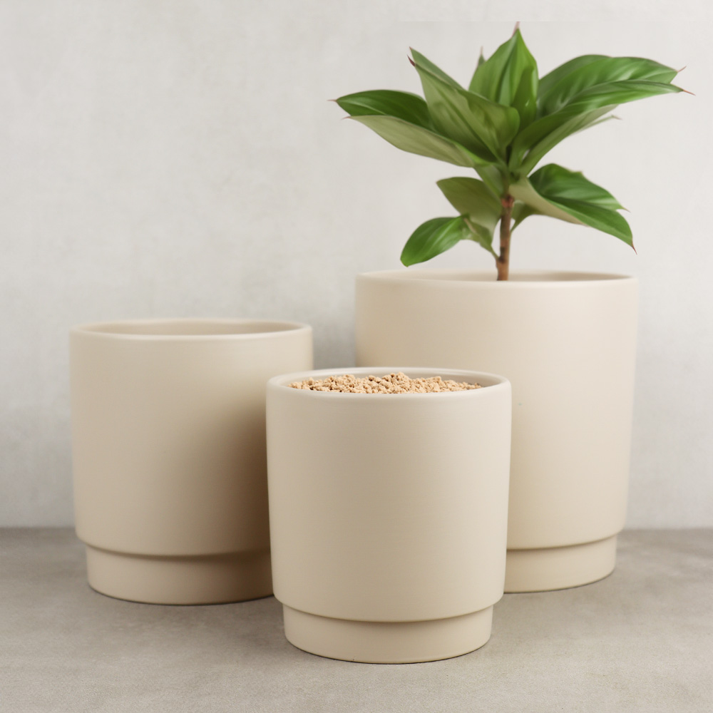 756-425 CACHE POT TERRACOTTA, BEIGE MAT, Ø6¾" x 7¼", BTE(4)