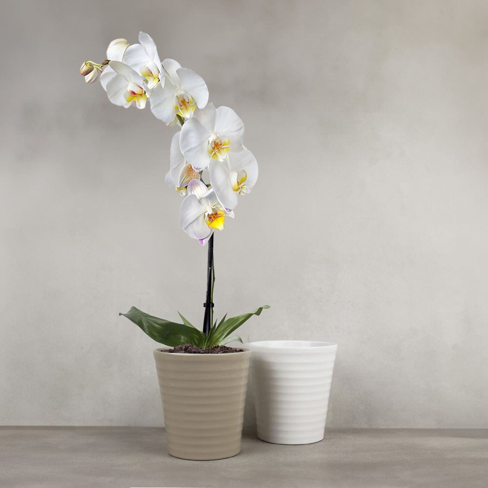 756-490 CACHE POT ORCHIDÉE TERRACOTTA, BLANC, Ø4¾" x 5½", BTE(6)