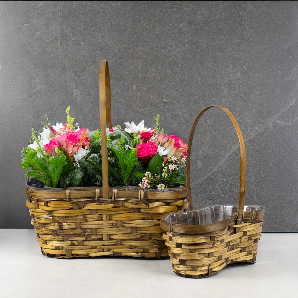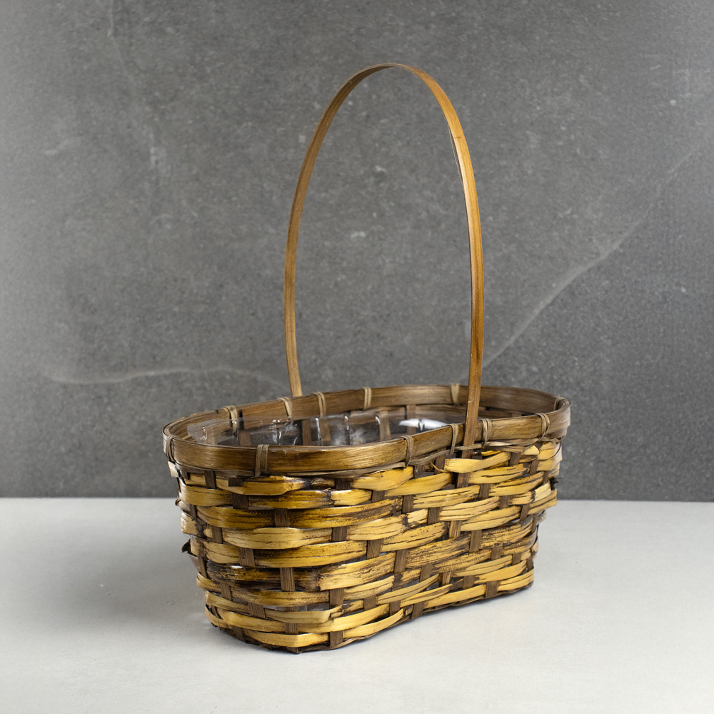 803-410 PANIER DUO EN BAMBOU A/ANSE & DOUBLURE, NATUREL, 14" (POUR POT 6")