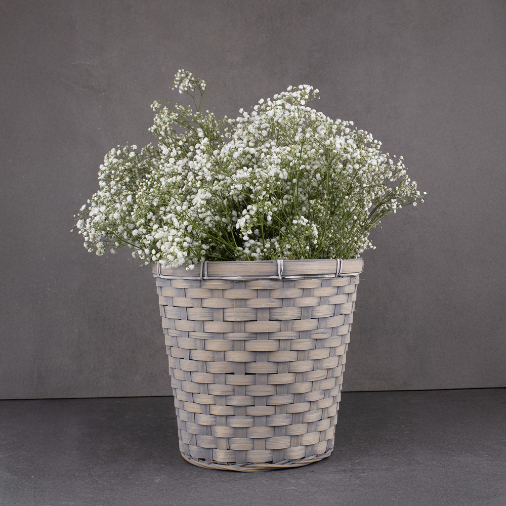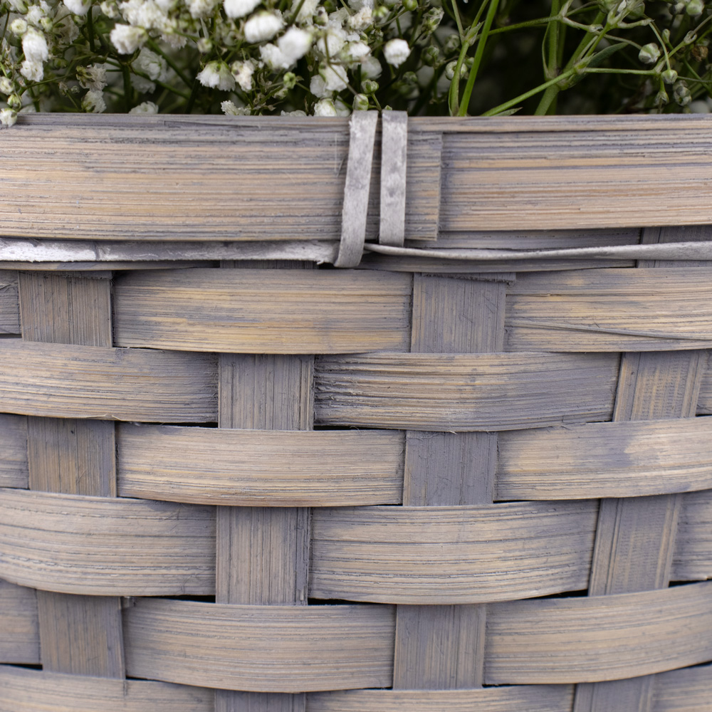 803-594 CACHE POT ROND BAMBOU GRIS DÉLAVÉ ET DOUBLURE 8"(20CM)
