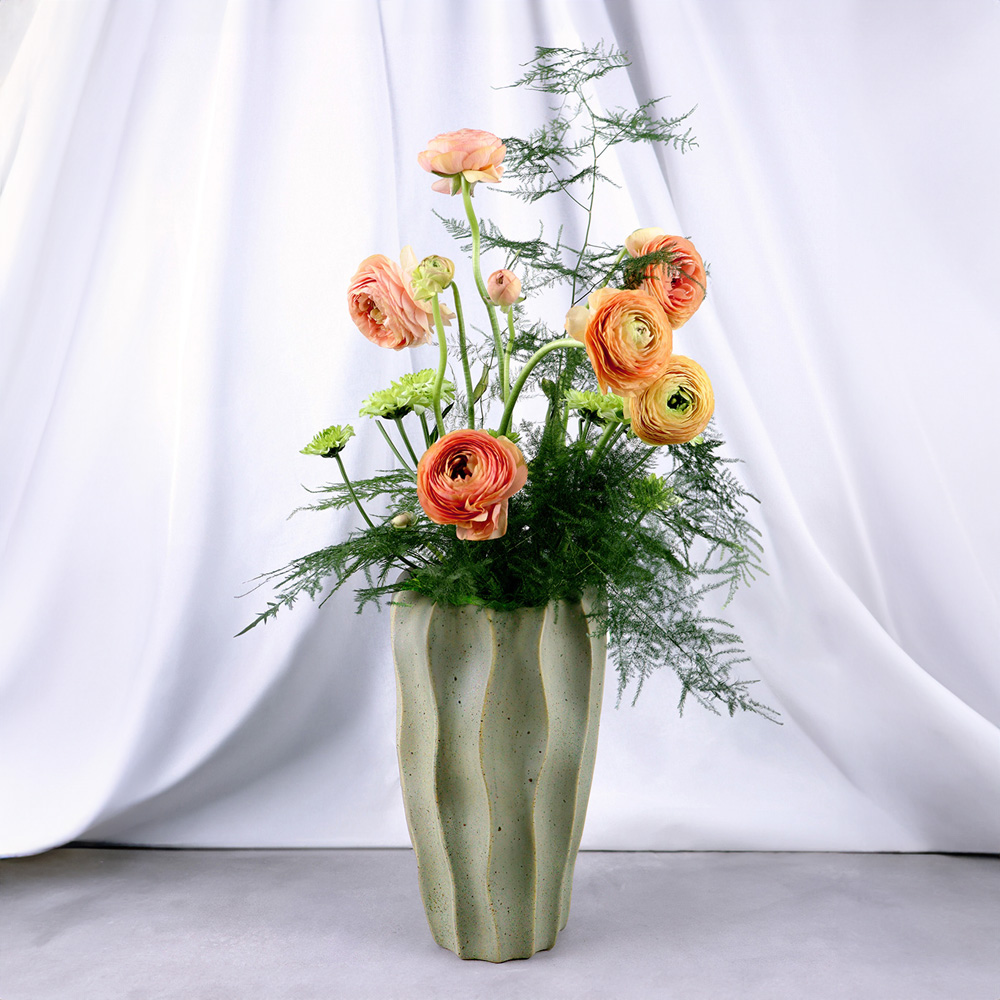 811-051 VASE EN CÉRAMIQUE, VERT, 7"x12", BTE(3)
