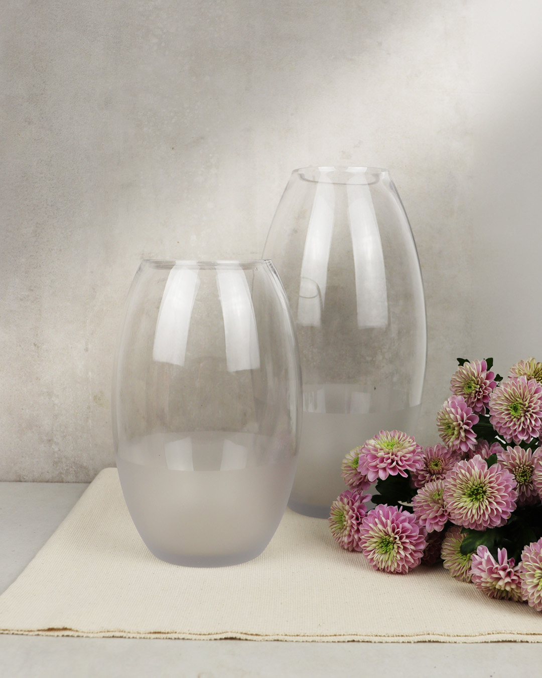811-222 VASE EN VERRE, CLAIR/GIVRÉ, approx. Ø4"X12", BTE(4)